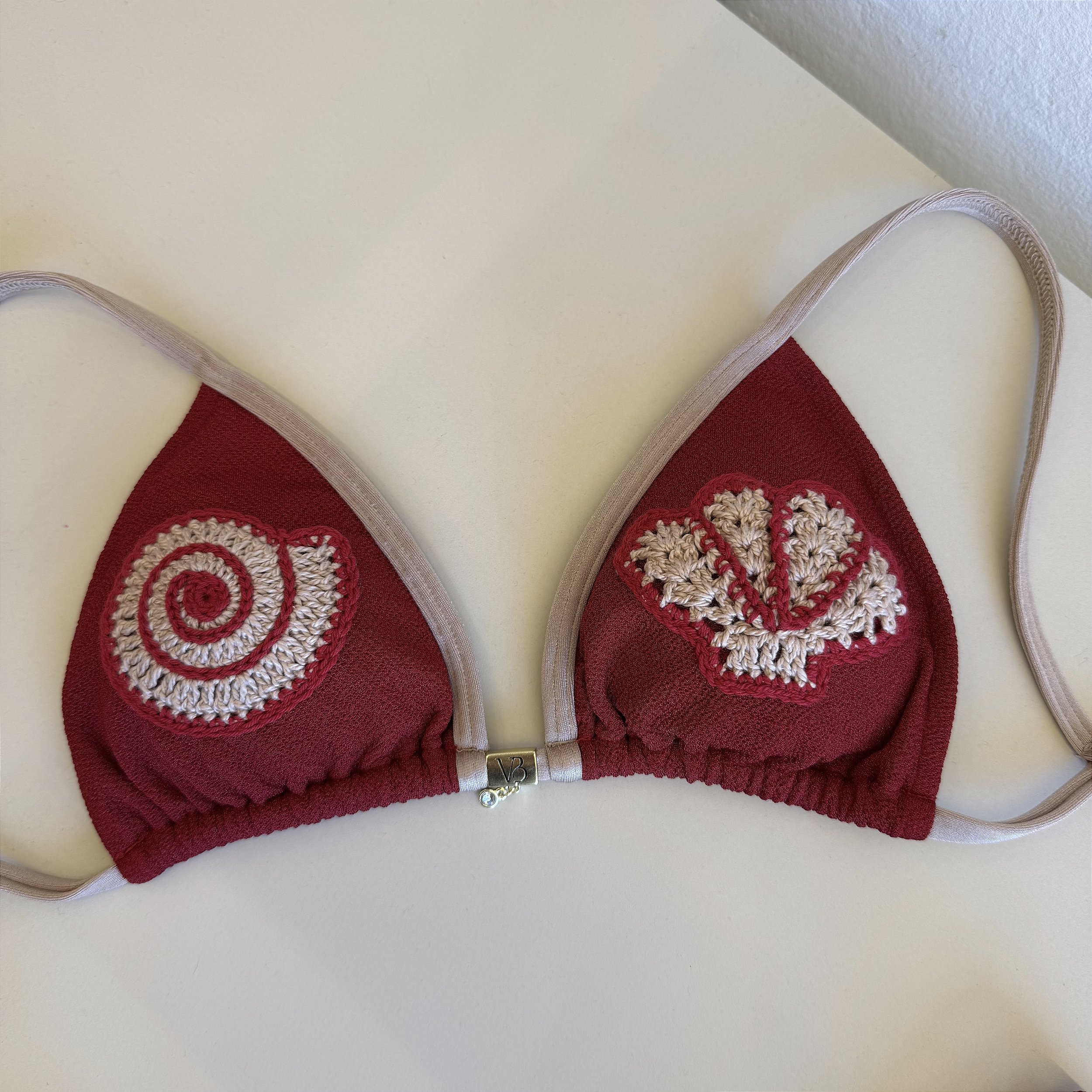 Top cortininha com bojo removível 018 com detalhes em crochê Tulum vermelho e Glow chocolate Ilhabela (CALCINHA NÃO INCLUSO)