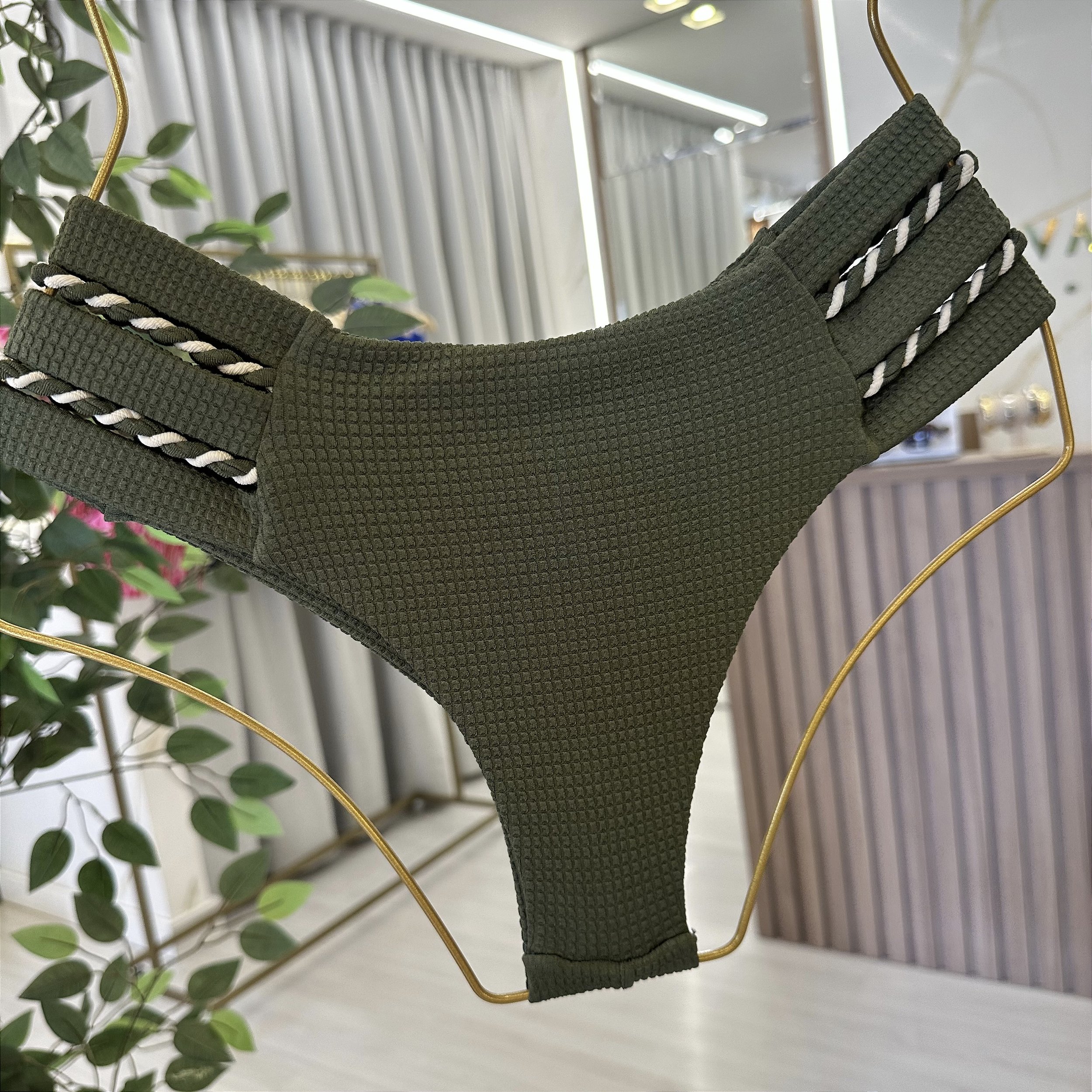 Calcinha semi hot pants 5005 verde militar com detalhes off white Ilhabela (BUSTO NÃO INCLUSO)