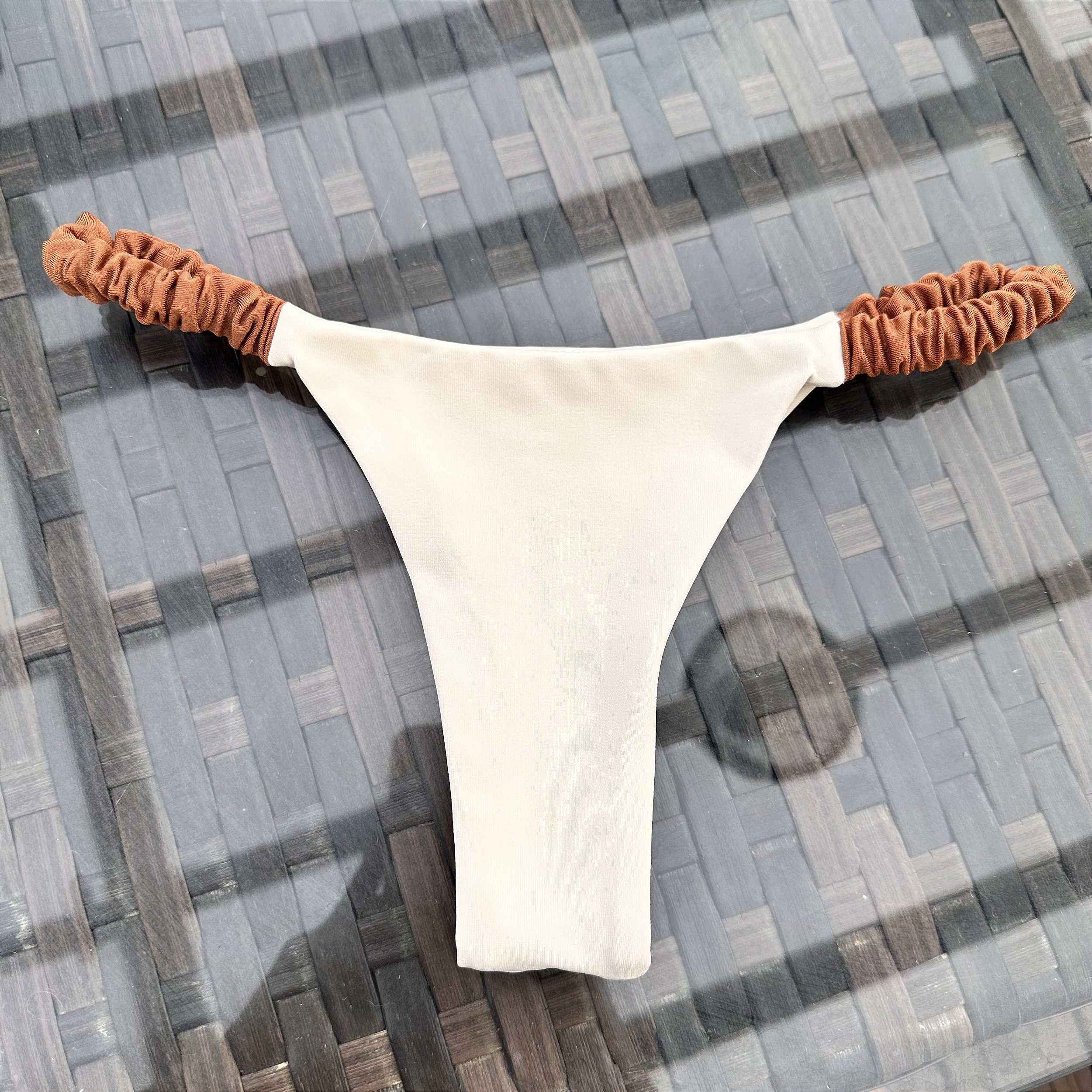 Calcinha 016 Semi Fio fru-fru lateral Ilhabela off white e Glow marrom (top não incluso)