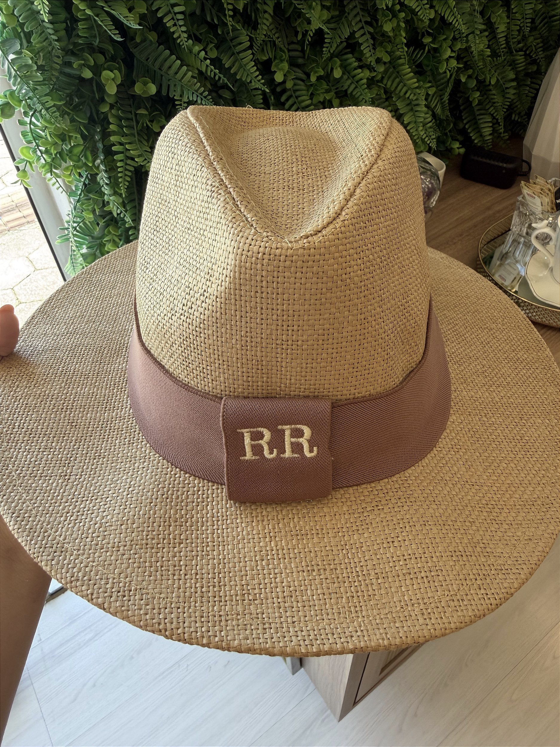 Chapéu com regulagem na cabeça com faixa personalizadas com as iniciais cliente