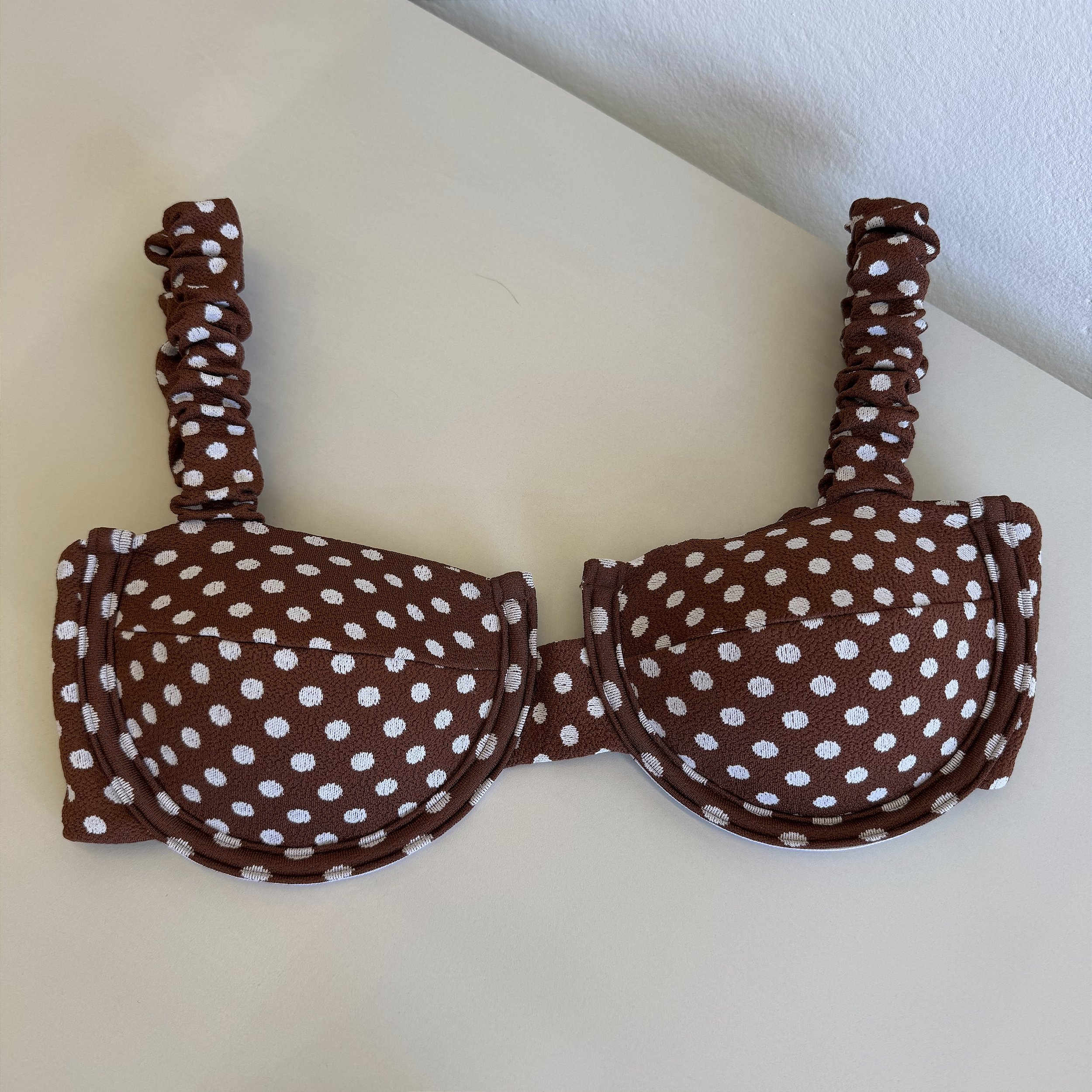 Meia Taça com fru-fru alça Bojo Maleável 813 aro Roma poá marrom (CALCINHA NÃO INCLUSO)