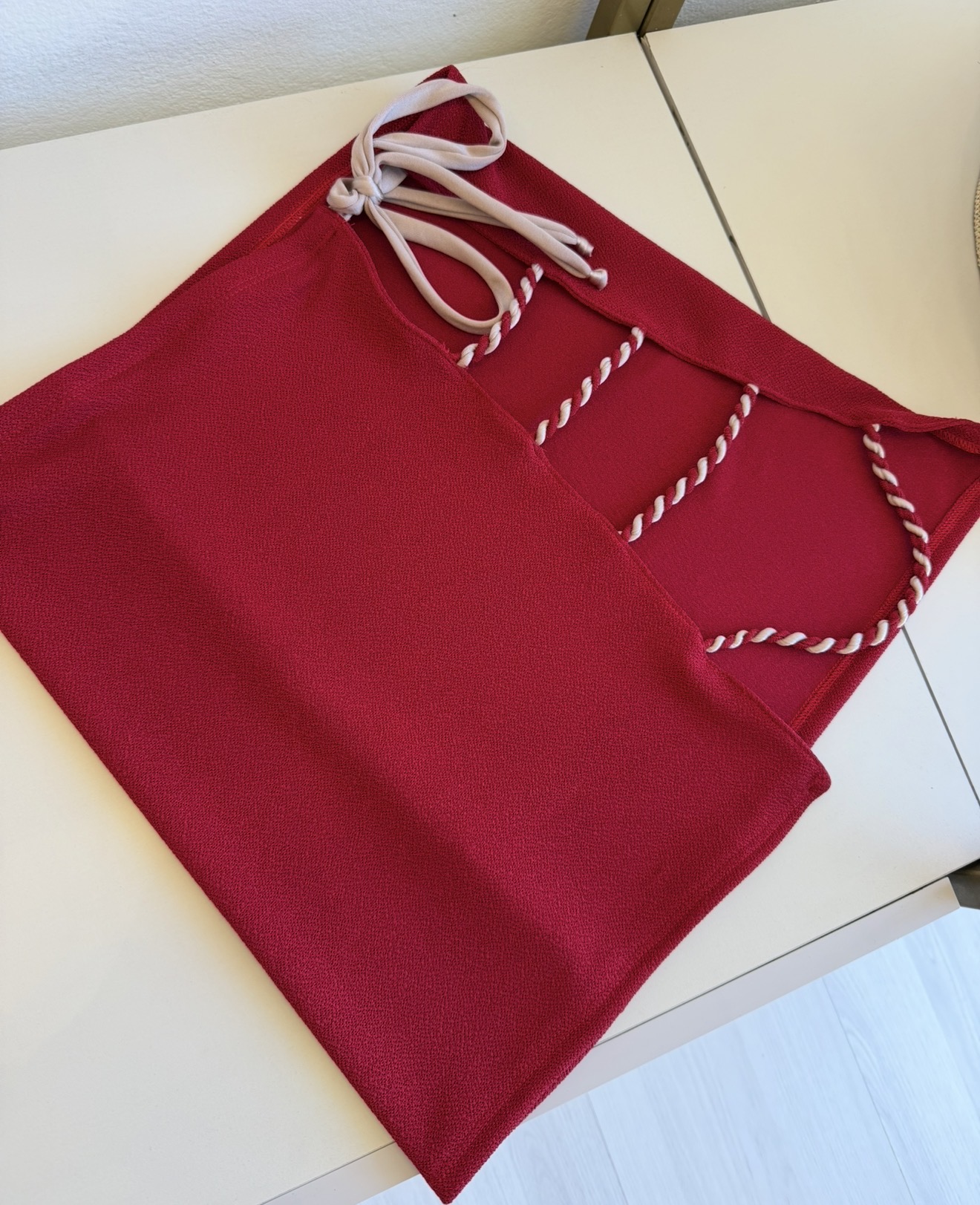 Saia Ilhabela vermelho com fenda lateral e alcinhas torcidas( valor somente da saia )
