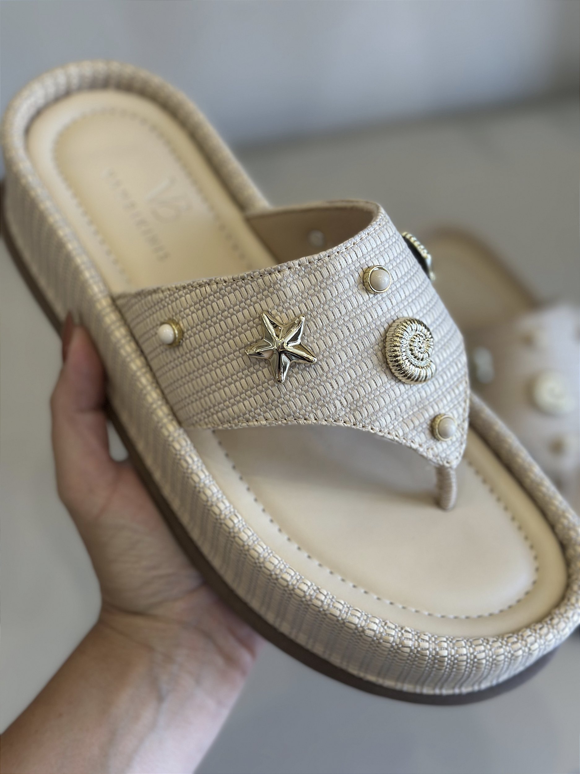 A Sandália Flat Maresia é aquele toque de frescor que transforma qualquer look. Com aplicações inspiradas no fundo do mar, ela traz uma delicadeza única e super sofisticada, perfeita para quem ama detalhes que fazem a diferença.