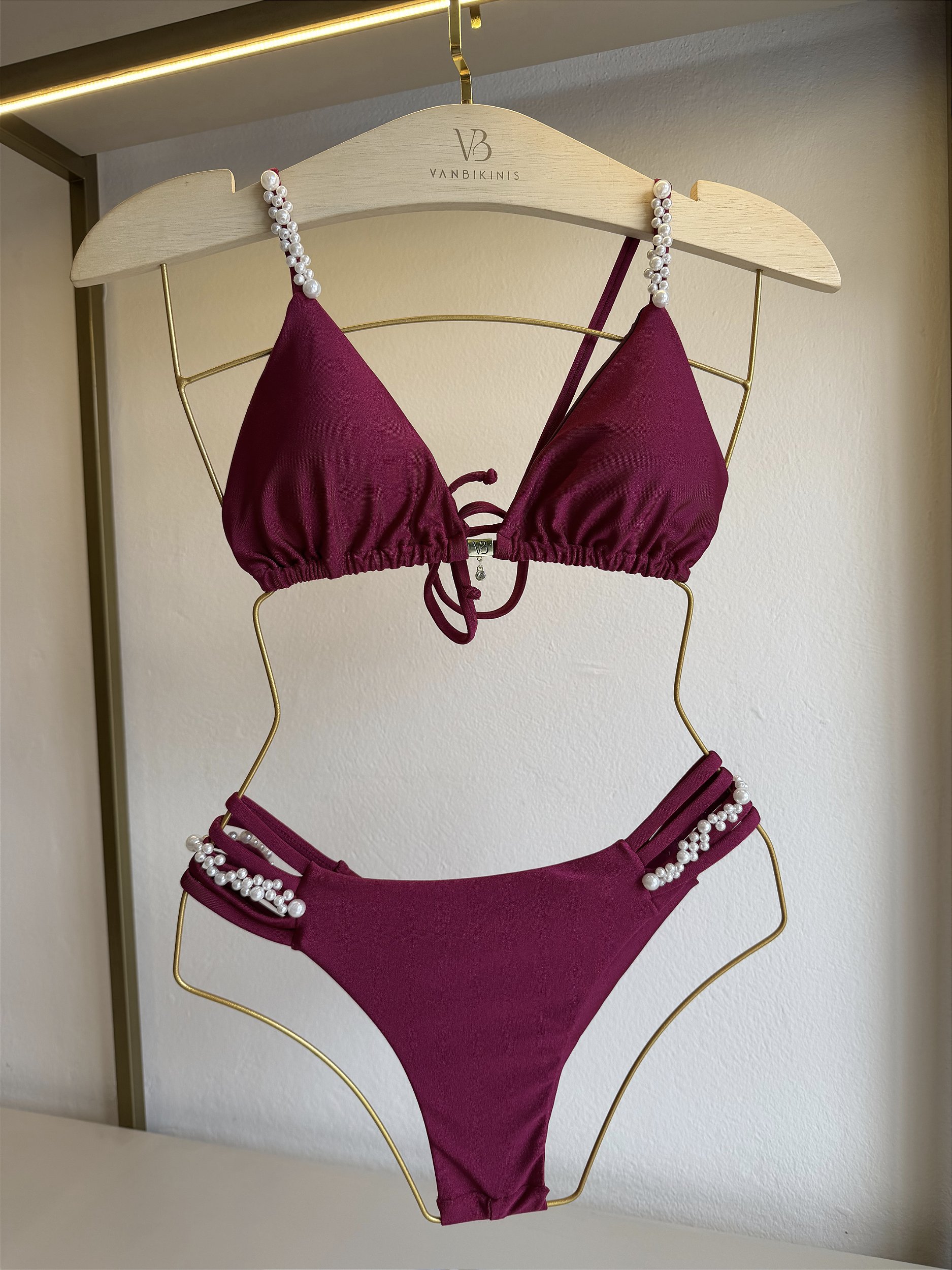 Top cortininha com bojo removível 004 com bordado pérolas Amalfi marsala (CALCINHA NÃO INCLUSO)