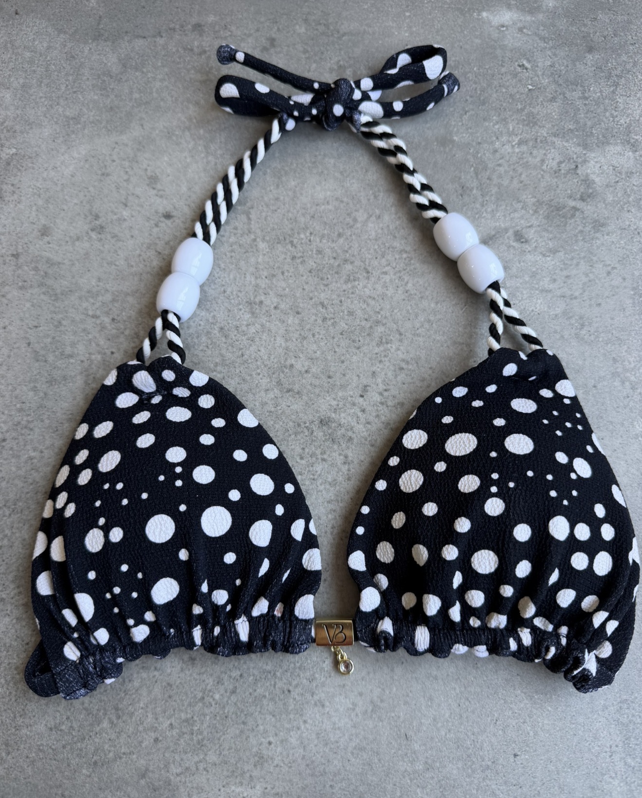 Top cortininha com bojo detalhes trançados e miçangas alças com bojo removível Tecido Lumiere poa preto(CALCINHA NÃO INCLUSO)