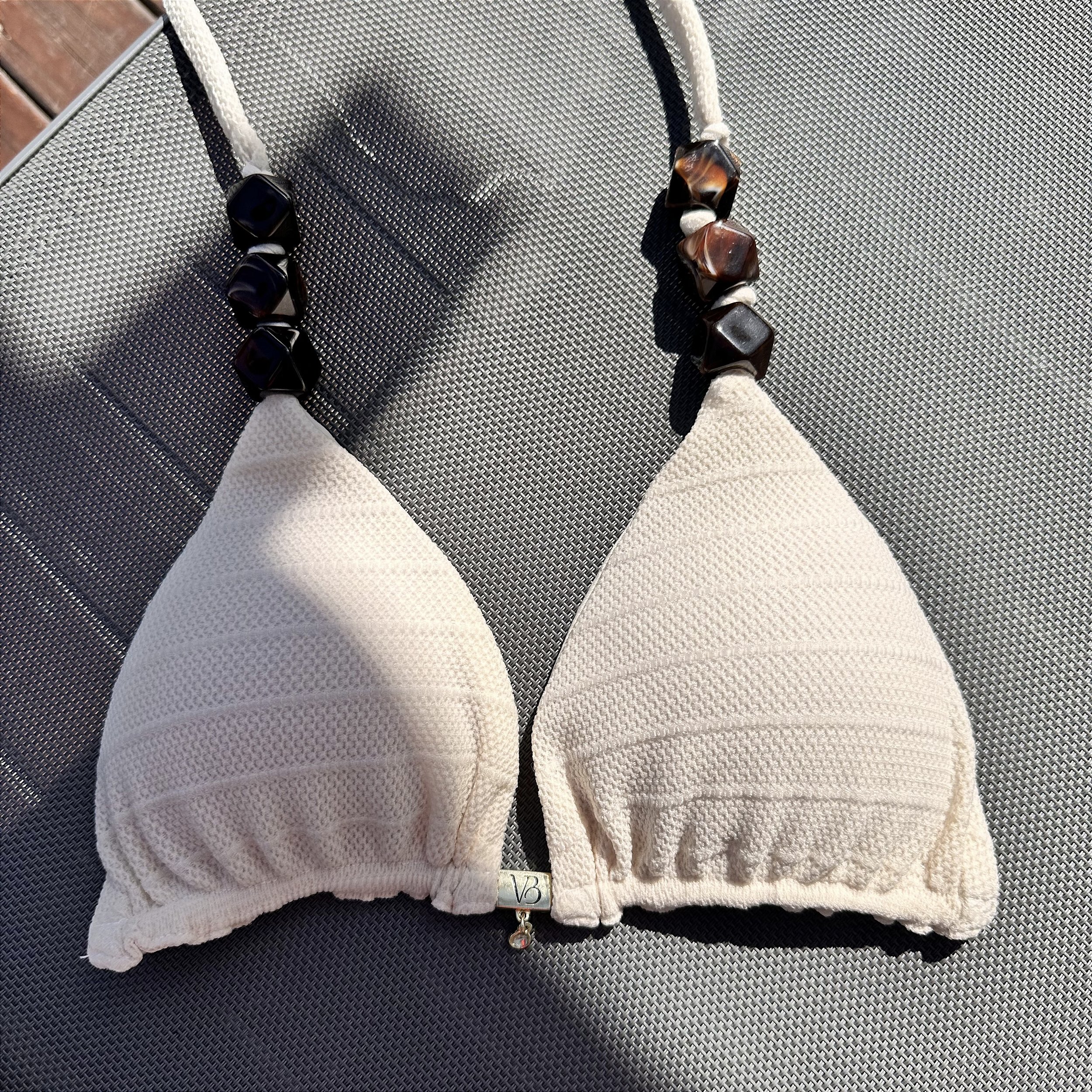 Cortininha 004 com Bojo Maleável Rivieira off white com pedra marrom (CALCINHA NÃO INCLUSO)